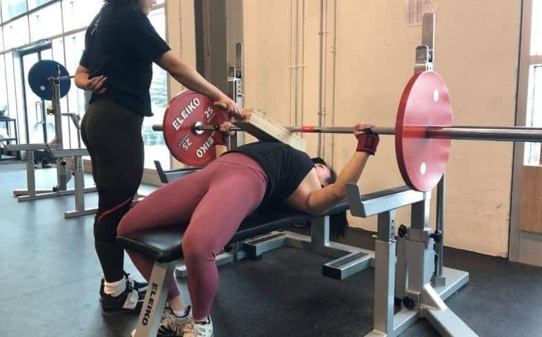 The boarded bench press is when a lifter puts wooden boards on their chest to restrict the range of motion used.